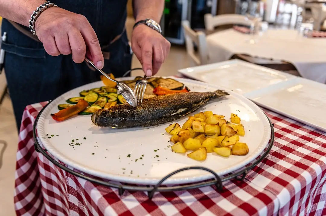 Zahnbrasse und Stockfischcreme, Sardinen und Garnelen in Saòr